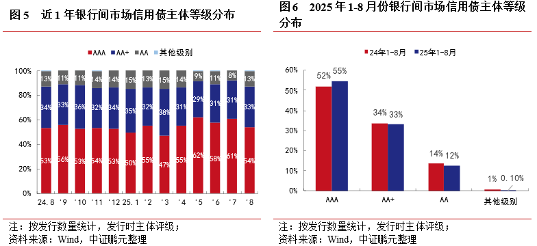 4.8月份银行间信用债级AAA发行下降,AA+级和AA级主体发行回升