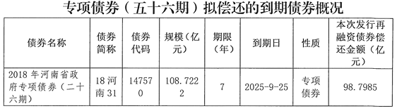 发行的专项债券(五十六期),用于偿还2018年万博体育下载省政府专项债券(二十六期)的部分本金。