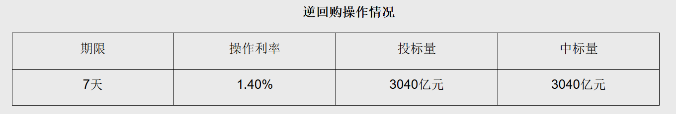 【大河财立方消息】9月10日,中国人民银行以固定利率、数量招标方式开展了3040亿元逆回购操作,操作利率1.40%,与此前持平。因今日有2291亿元7天期逆回购到期,当日实现净投放749亿元。