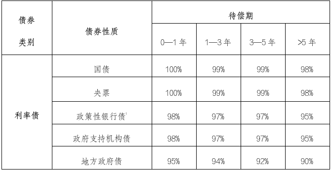 集中债券借贷业务合格担保品范围及质押率详见下表: