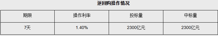 【大河财立方消息】9月12日,央行开展2300亿元7天期逆回购操作,投标量2300亿元,中标量2300亿元,操作利率为1.40%,今日有1883亿元逆回购到期,当日实现净投放417亿元人民币。