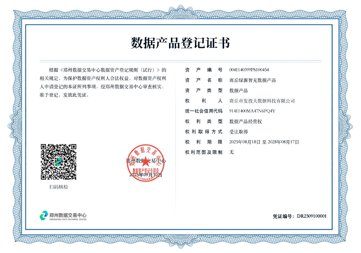 【大河财立方 见习记者 李雯雯】9月12日,大河财立方记者从郑州数据交易中心获悉,近日,商丘市发展投资集团全资子公司——商丘市发投大数据科技有限公司在郑州数据交易中心完成“商丘绿源智充数据产品”的登记与挂牌,成为商丘市首例成功登记的数据产品案例。