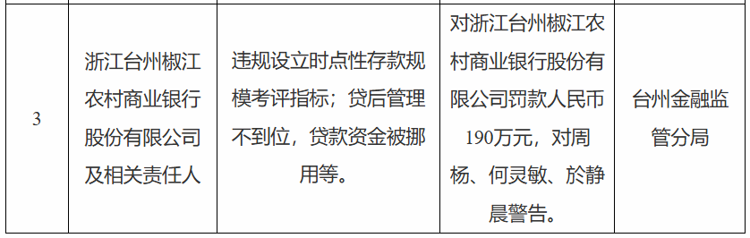 同时,台州金融监管分局对相关责任人周杨、何灵敏、於静晨警告。