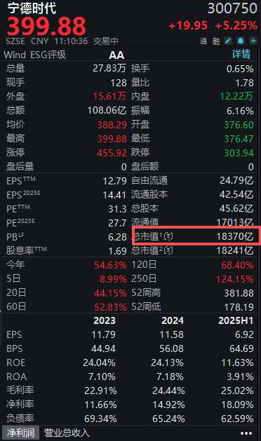 【大河财立方消息】9月25日,宁德时代A股涨超5%,H股涨超4%,均创历史新高,A股总市值超1.83万亿元并超越贵州茅台市值。