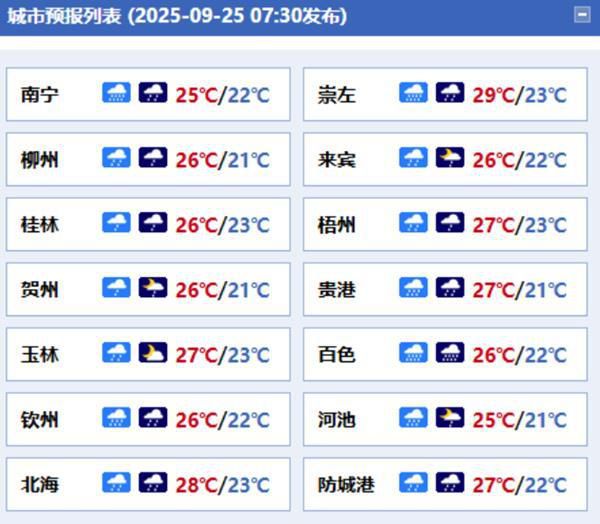广西气象台预计,今天白天到晚上,北海、钦州、防城港、崇左、百色、南宁、来宾、贵港、玉林、梧州等市及河池市南部有大雨到暴雨,局地大暴雨并伴有短时雷暴大风等强对流天气,其他地区有小到中雨,局地大雨或暴雨。同时,沿海地区平均风力可达5至6级、阵风7至8级,其他地区平均风5级,阵风6至7级。