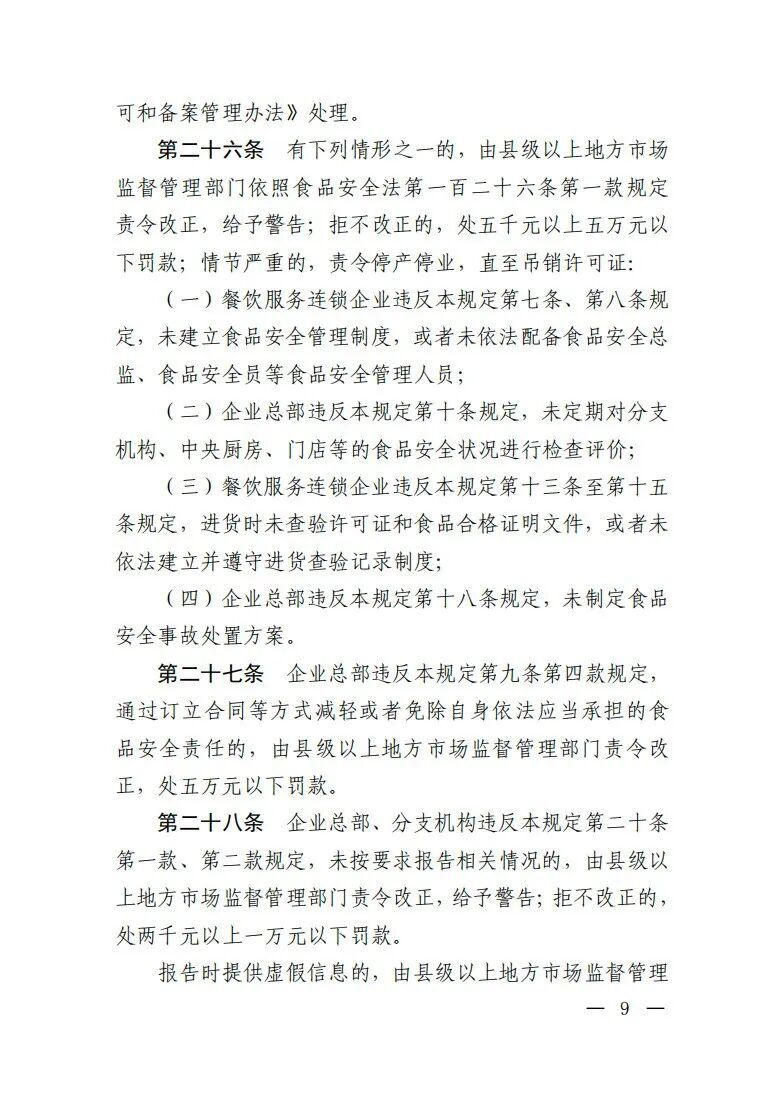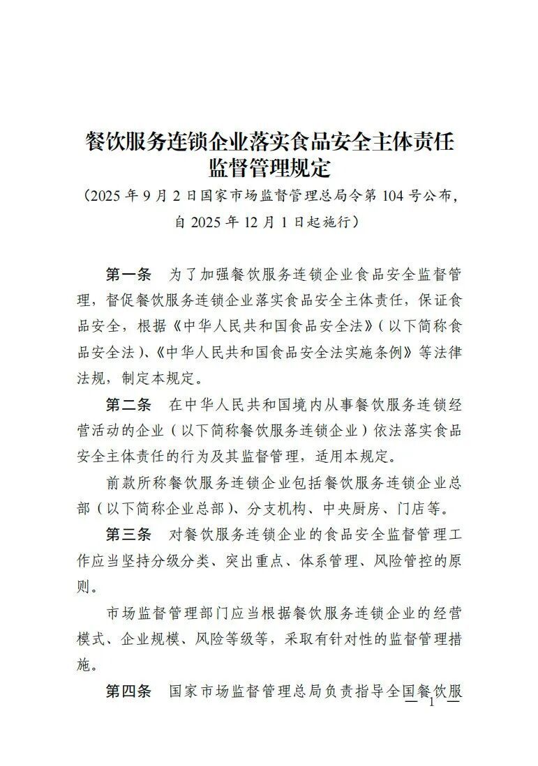 【大河财立方消息】9月28日消息,市场监管总局日前对外发布《餐饮服务连锁企业落实食品安全主体责任监督管理规定》(以下简称《规定》),加强餐饮服务连锁企业食品安全监督管理,督促其落实食品安全主体责任。