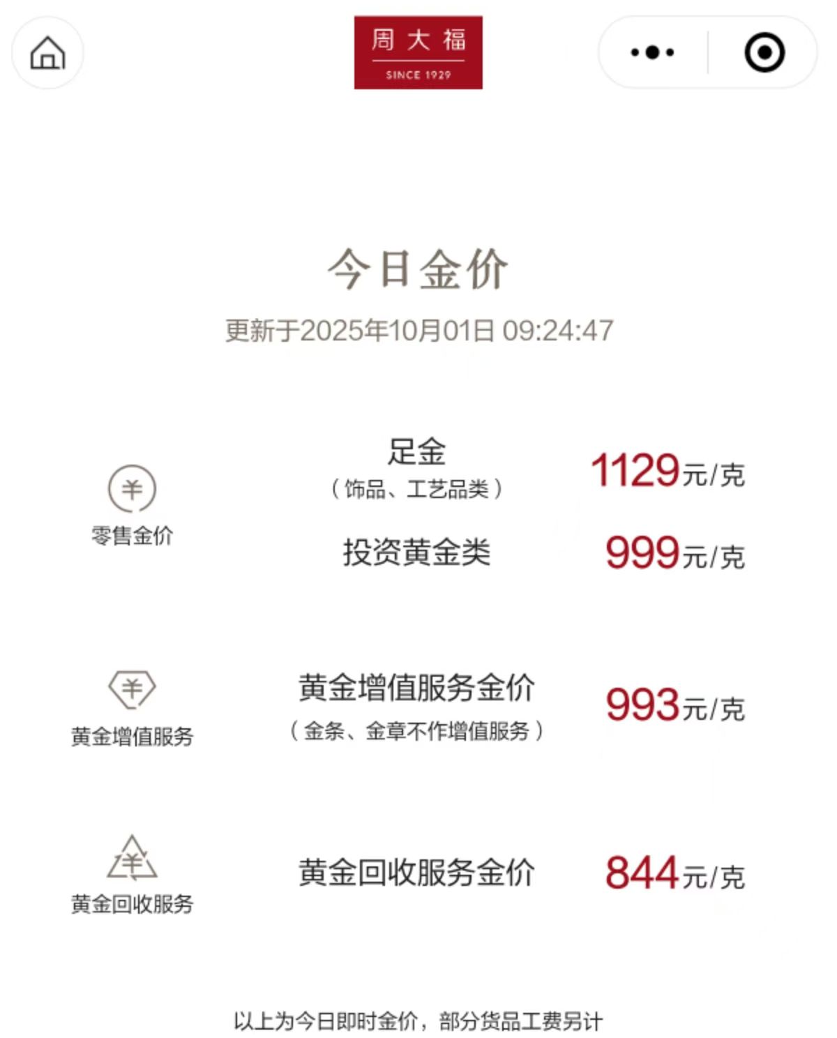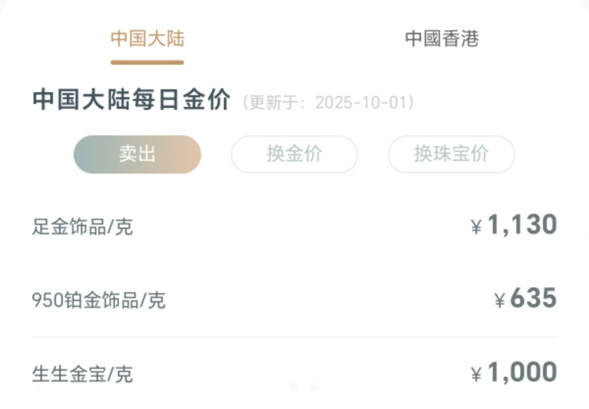 国内多家品牌金饰价格跟涨。其中,周生生足金饰品价格涨至1130元/克,周大福足金饰品价格涨至1129元/克。