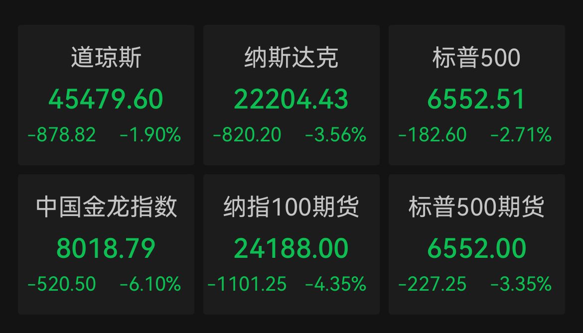 【大河财立方消息】北京时间10月11日,美股三大指数集体收跌,道指跌1.9%,本周累计下跌2.73%;纳指跌3.56%,本周累计下跌2.53%;标普500指数跌2.71%,本周累计下跌2.43%。纳指、标普500指数创4月以来最大单日跌幅。