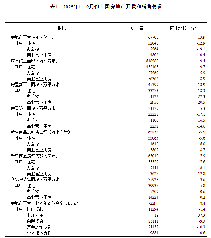 【大河财立方消息】10月20日,国家统计局公布2025年1—9月份全国房地产市场基本情况。