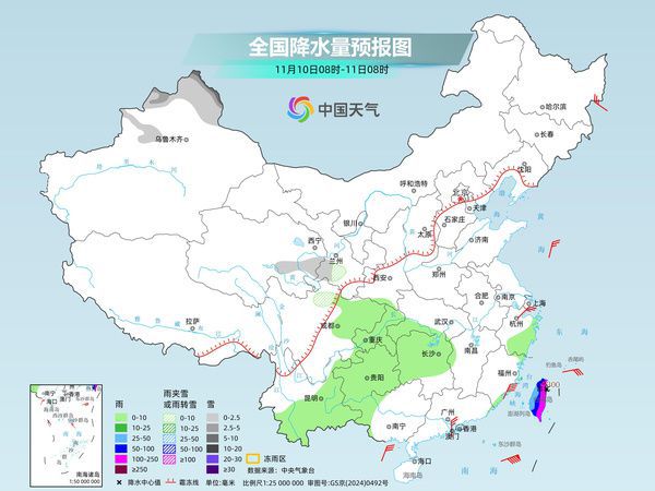 明天,内蒙古东北部、黑龙江北部和东部、青海东部等地部分地区有小雪或雨夹雪。江淮西部、江汉南部、江南大部、西南地区东部和南部、广西西部、海南岛、台湾岛等地部分地区有小到中雨,其中,云南西南部局部有大雨。