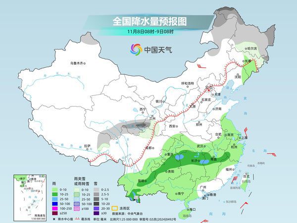 中国天气网讯 周末两天(11月8日至9日),冷空气将继续东移南下,东北多地仍有较强降雪,江南多地降雨增强,公众外出需小心慢行,警惕能见度降低和道路湿滑对交通的不利影响。在冷空气和降雨的共同影响下,江南多地将开启降温模式,湿冷感加重,需及时添衣防感冒。